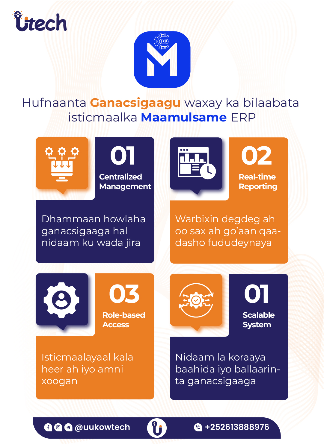 Haddii aad rabto in ganacsigaaga si xirfad leh loogu dhiso website, suuq-geyn dijitaal ah, nidaam POS/ERP, ama automation—Uukow Technology Solutions waxay ka shaqeysaa xalal ganacsiga ku habboon: websites, systems, apps, digital marketing, iyo business automation.